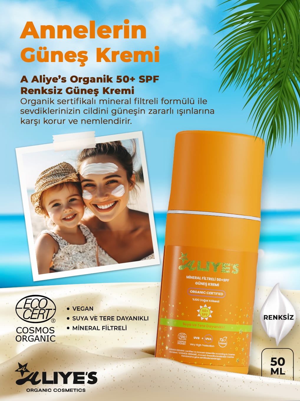 SPF 50+ Organik Mineral Filtreli Güneş Kremi – Natural Ton